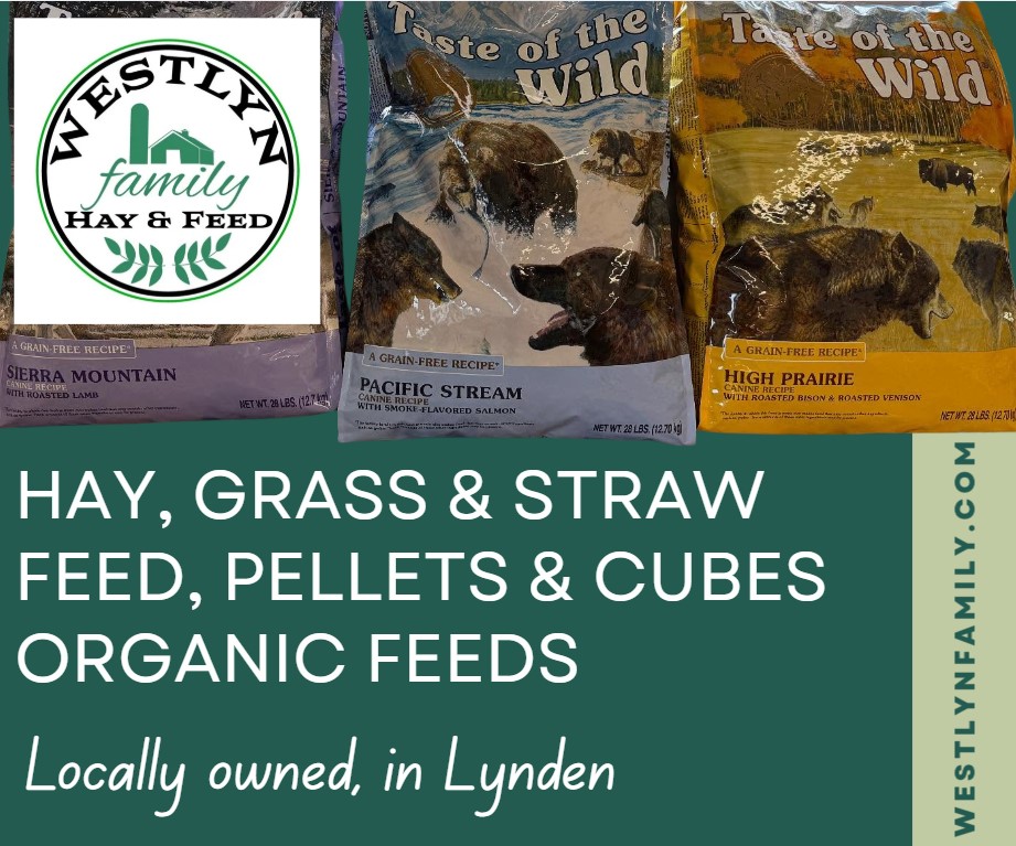 Westlyn Family Hay & Feed – your local feed store offering hay varieties, organic & non-organic feeds for all your farm animal needs. And, they now carry raw dog food & treats from Widnor Farms!